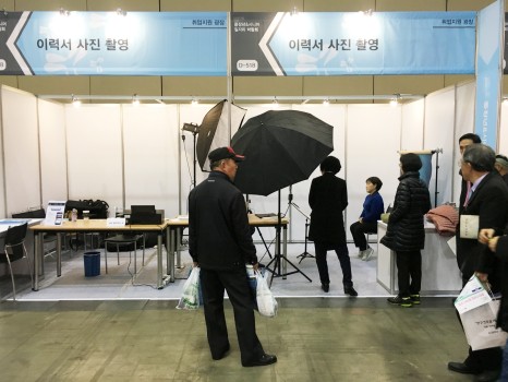 저희는 취업박람회와 채용박람회에서 이력서 사진 촬영 부스 운영을 전문으로 서비스하고 있습니다. 이 번에는 고양시에 있는 킨텍스에 다녀왔어요. 중장년과 시니어들을 위한 일자리 박람회에 행사 사진과 이력서 사진 모두를 의뢰받아 다녀왔습니다. 살짝 보여드릴께요~