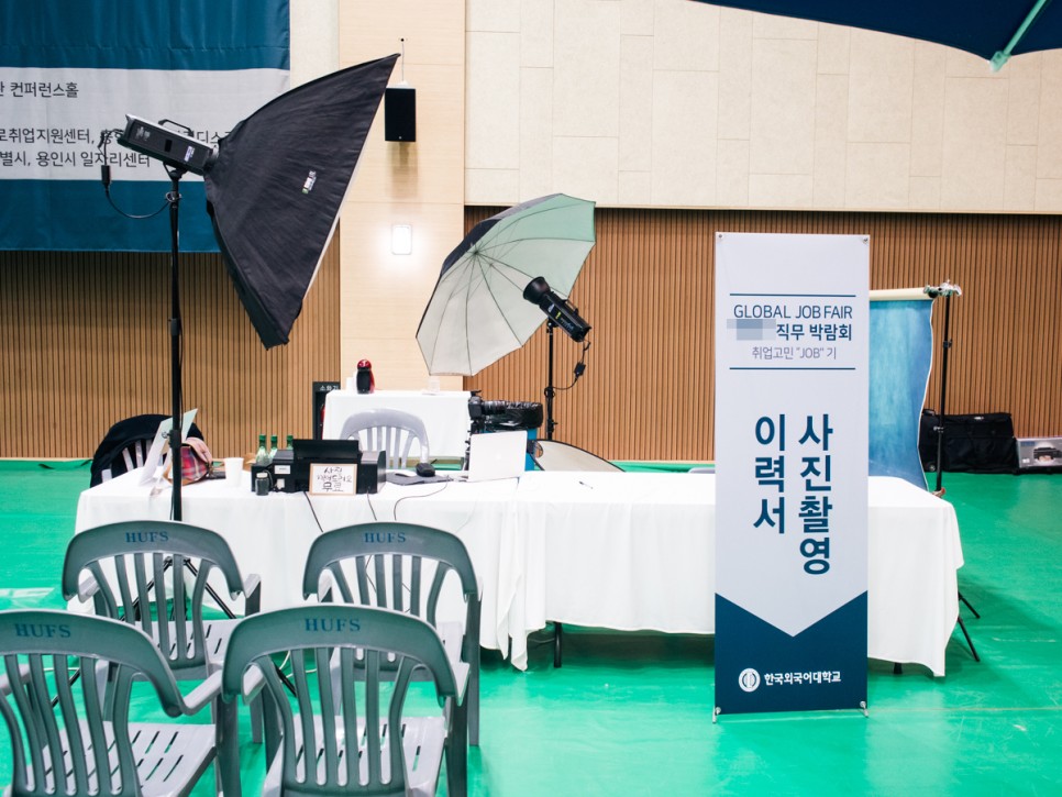 이번에 참가한 곳은 "학생이 꿈을 꾸고, 발전하고, 성공하는 대학!" 한국외국어대학교의 글로벌캠퍼스입니다. 백년관에서 한국외국어대학교의 글로벌 Job Fair 직무박람회가 이틀간 개최되습니다. 상상공작소는 현장에서 간단하게 이력서 사진 팁과 촬영, 보정, 출력 서비스를 담당하였습니다.