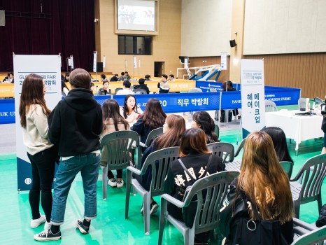 헤어, 메이크업 서비스는 남녀를 가리지 않고 필수 코스가 되었습니다. 이력서 사진 촬영전 헤어/메이크업 서비스를 받으시는 분들과 취업 운세를 점쳐주는 취업 타로 코너등이 있었습니다. 그리고 다양한 직무들을 컨설팅해주는 대학원상담, 창업, 직무 컨설팅등 교육적이고 대안적인 많은 솔루션들이 학생들에게 제공되었습니다.